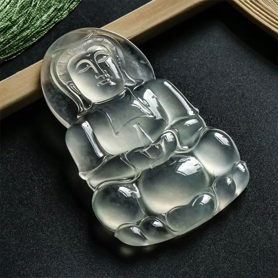 冰玻种晴水略飘花玉佛挂件