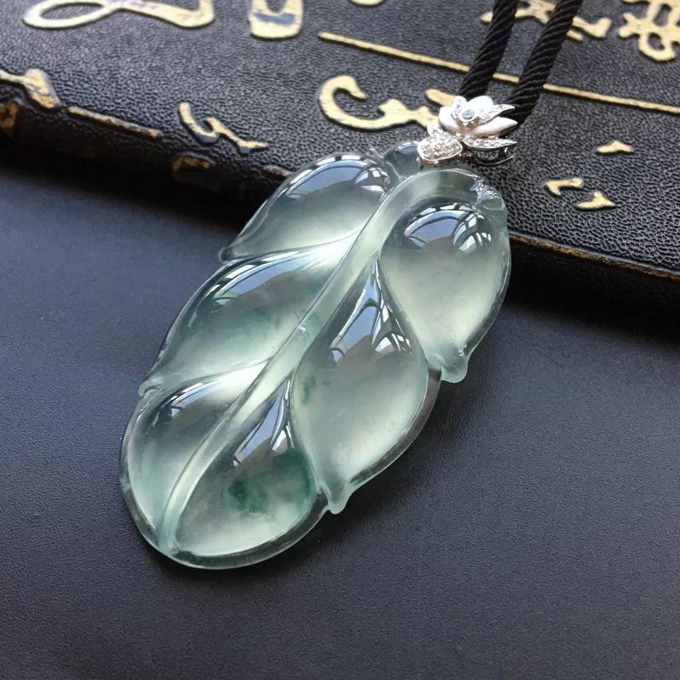 冰玻种飘花玉叶挂件