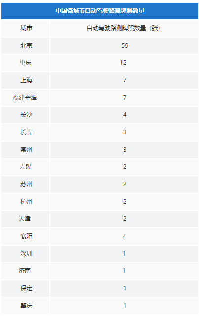 颁发109张自动驾驶牌照,百度最多