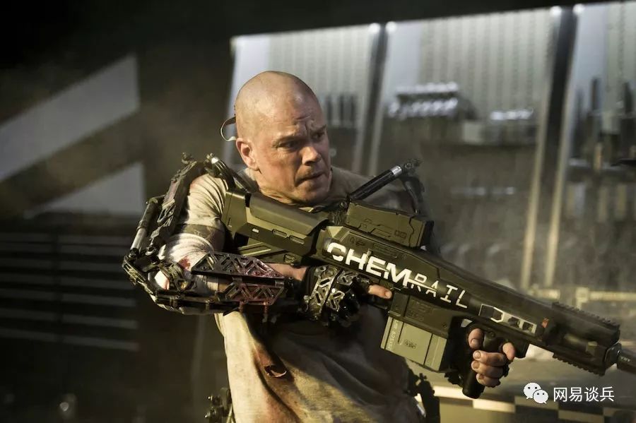 2013年上映的美国科幻片《极乐空间》,描绘了一个富人的天堂和穷人的地狱的世界。影片里出现了非常酷炫的电磁武器,但这些只是剧本设定的一小部分。它们可不是《蒸发密令》里那种威力虽大,但射速着急的笨重家伙。像25公斤重的电磁炮,可以发射22毫米口径动能弹,炮口能量达到20兆焦,初速最高每秒5000米,有效射程12公里。威力比现有的坦克炮主炮大一倍,最高射速每秒200发!。另外一种单兵携带的电磁步枪,射速最高每秒1200发,最大动能30兆焦。这些武器的动能和射速都可调,堪称无敌的大杀器。