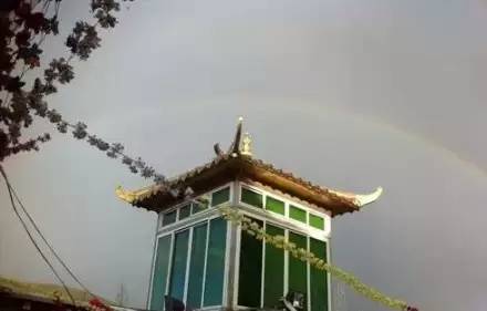 一共有十條彩虹。上師們說看到喇嘛仁波切回來了,他看到我們,但我們看不到他。