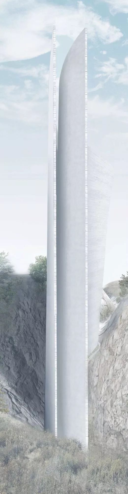 他在中国山东日照设计的教堂,入口最窄宽度仅为1.35米,而高度达到45米。