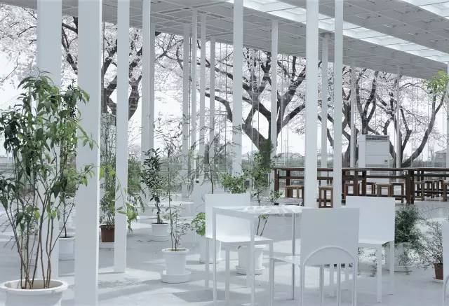 而柱子并未像石上纯也之前的作品那么消隐,毕竟黑顶和白柱对比过于强烈。