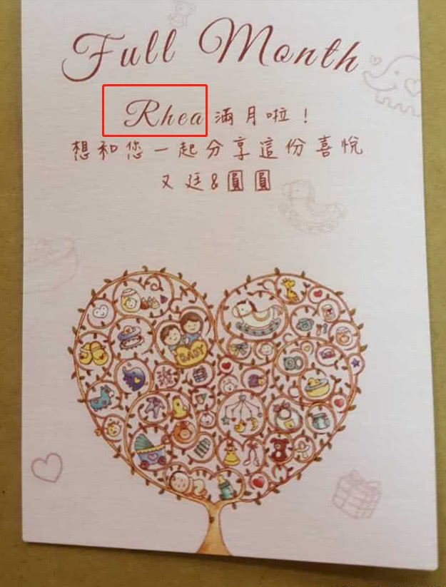 女儿的名字也是有赵又廷为她取的,叫“Rhea”。