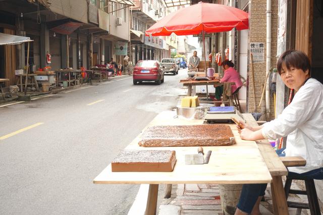 吴大姐家六代做糖糕,参加过上饶美食节获第一名,还被评为“江西省名小吃”。铺着芝麻、花生、红枣、茶油的糖糕,色泽赭红油亮,尝了尝滑嫩爽口、甜而不腻,确实好吃。她是小时候跟奶奶学的技术,如今又传给了儿媳妇,6元一斤的糖糕,平时每天能卖上两扇8大块约80斤。过年时生意最火爆,很多人从上饶市区、广丰过来采购,需提前预定。