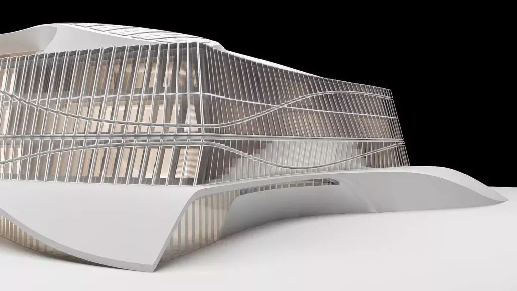 在外部,建筑的独特外观是想通过模仿运动员的优美动作向奥林匹克精神致敬。立面的动态波浪流动从各个角度看都不同,传达了运动员的运动能量。