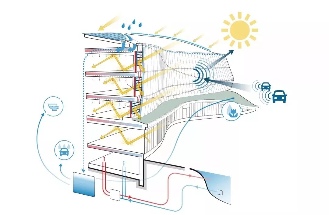 在不影响工作空间质量的前提下,该项目的创新性设计最大限度地减少了其占地面积,保护了生态环境,该建筑旨在满足当地乃至国际上最严格的可持续性设计标准,从而促进能源和水资源的利用效率,减少废弃物并实现景观一体化。