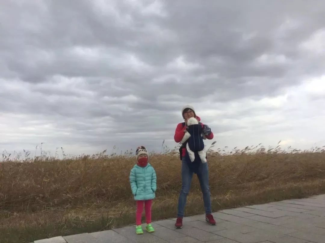 而二女儿米菟3个月大的时候正值深秋,挑战了更为艰辛的齐齐哈尔,在茫茫沼泽边经历了人生中前所未有的巨风,回想那个状态,真的只能用“风中凌乱”来形容——想睁眼睁不开,一张口,大风糊了一嘴……