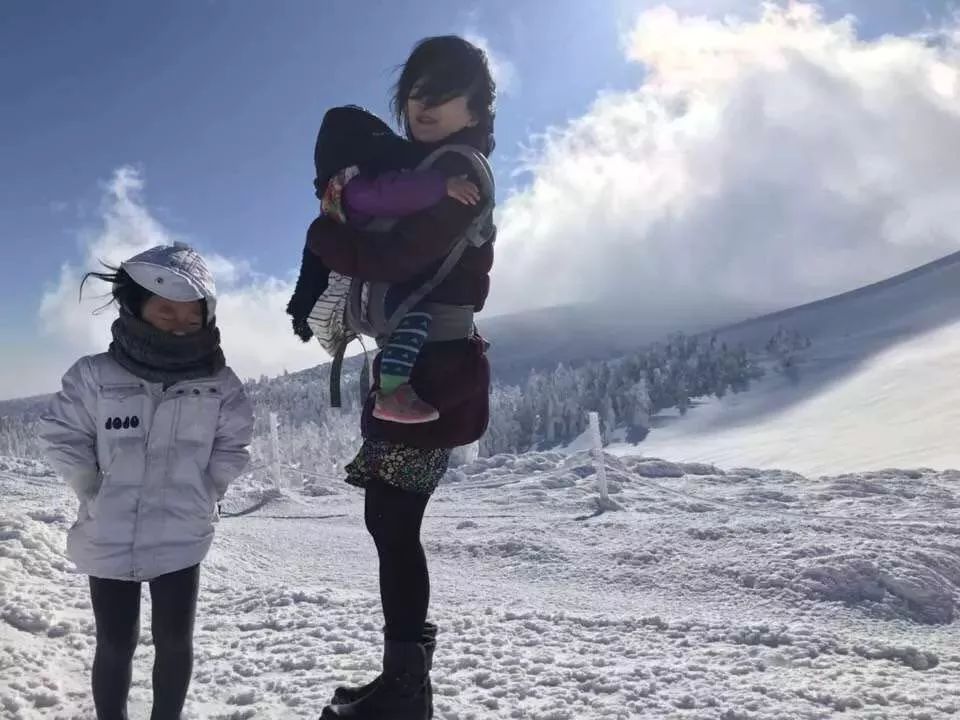 在我怀着米菟6个月的时候,大家一起去西岭雪山。可能是对重复的山景产生了厌倦,刚开始下山,米花就在我肩膀上睡着了,像个麻袋一样东倒西歪。去平武看山沟里养蜂人那次,也是下山准时睡着。爸爸去做样方,我就地一坐,用周围能够得着的各种软东西塞到她和我身体缝隙里,就成了舒服的人形床垫。