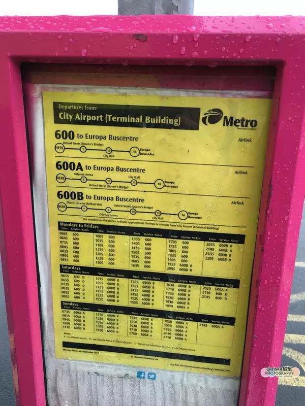 贝尔法斯特城市机场很小,巴士站就在外面的马路边上,很容易找到。