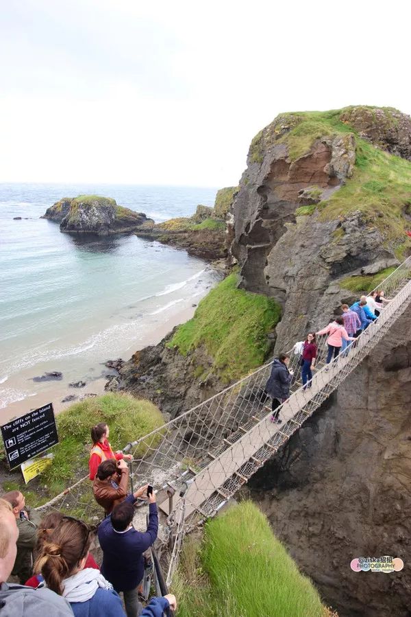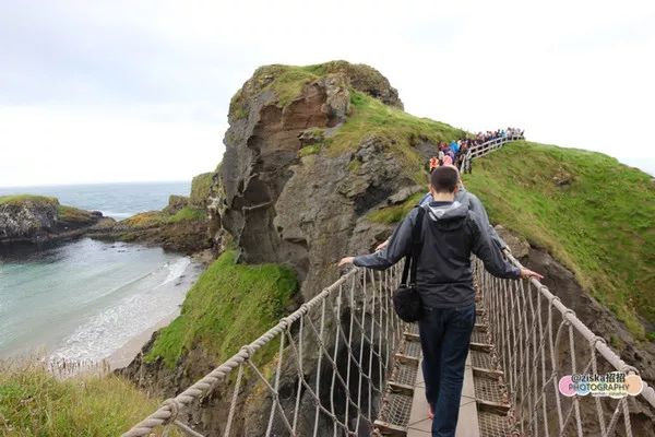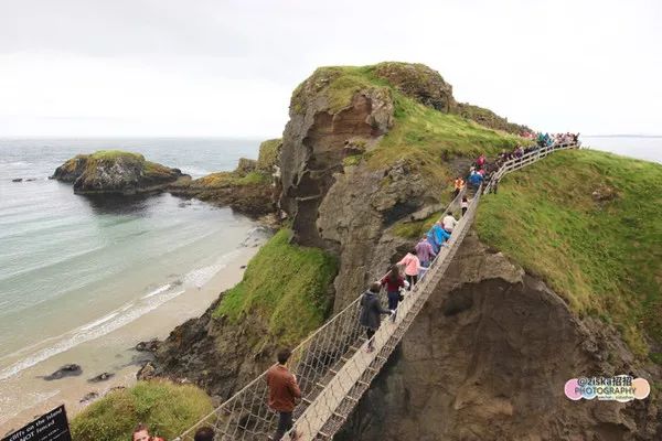 这座桥修建在北爱尔兰支离破碎的海岸线的悬崖峭壁间,是北爱尔兰最惊险的景观之一,被誉为世界第3险峻的索桥。索桥连接着爱尔兰主岛和小岛Carrick-A-Rede。小岛的名字是爱尔兰语,其意为“脱落的大石头”。而当你穿过索桥的时候,你也正好跨越了6千万年的火山口。穿过桥的费用是5.9磅,团体票是5磅,赚了。如果不过桥,只是在岸边拍桥,是免费的。