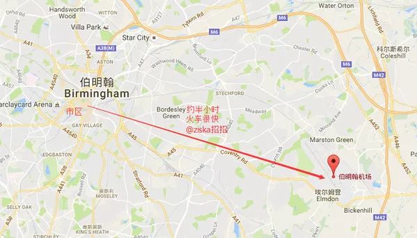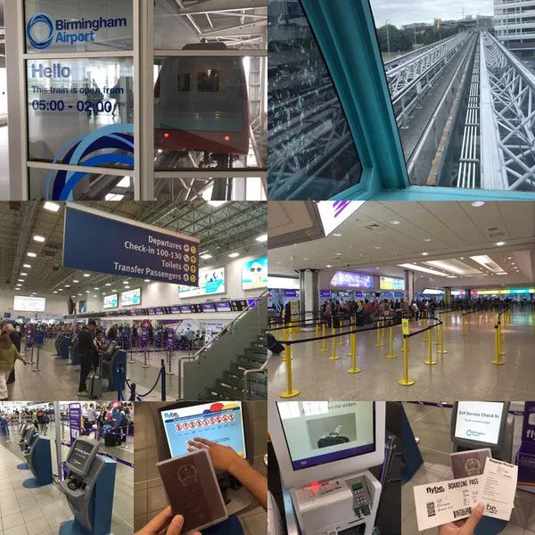 到了Birmingham Internatl火车站后,跟着Birmingham Airport的提示前往机场,需要转乘免费接驳列车,约2分钟就到了伯明翰机场,很方便。