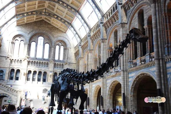 英国自然历史博物馆Natural History Museum非常有名,重点是免门票。博物馆外观相当华美,外墙、窗户及内部的雕花细腻精美,令人赞叹,维多利亚式的建筑宛如一座大教堂,所以它还被称为“自然大教堂”。门口的巨型恐龙标本很震撼,是欧洲最大的自然历史博物馆。