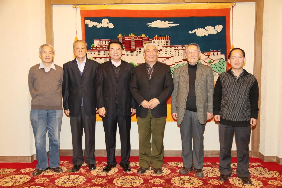 ▲ 2013年1月15日,洛桑聘请中国科学院、中国工程院的5位院士为《青藏高原环境与山水文化》课题学术顾问。(自左至右依次为郑度、孙鸿烈、白春礼、任继周、姚檀栋)