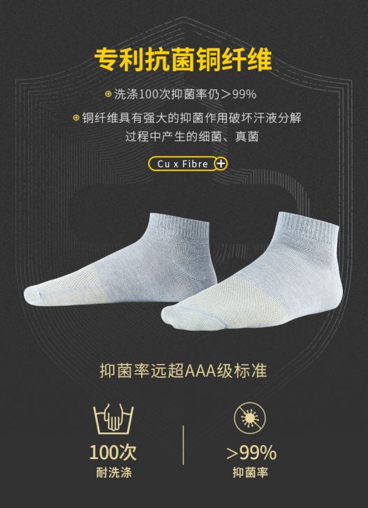 特别在袜子的前半部分使用双倍铜纤维,
