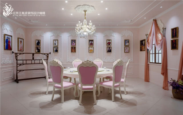 公主的包房,很应景,整个空间为粉色的公主风。墙面装饰运用内蒙特有花纹做的大面积石膏圈线,