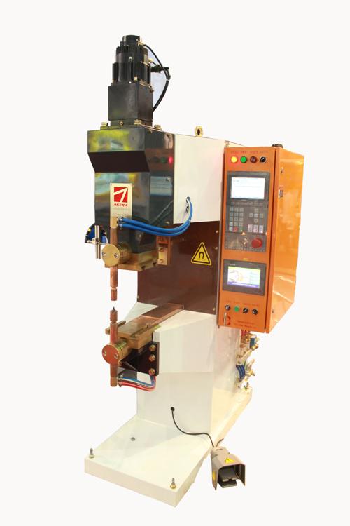 由于所用焊接电流较大、焊接时问又铰长,中频点焊机焊接设备为了避免产生飞溅,在增加焊接电流和通电时间的同时,也应增加电极力,这也有利于把熔化的镀层挤到焊接区周围。一般电极力应增加10%一25%。