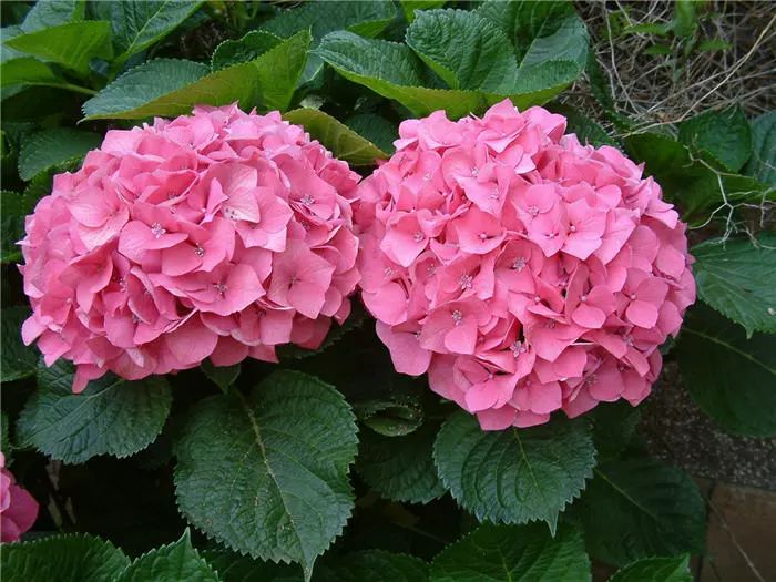 绣球花的花色可以由粉色变成蓝色或紫色,这些品种一般都是大叶的,花朵也会非常大,花朵的形态一般都是圆球形的。