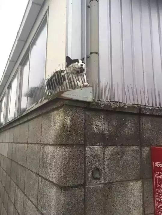 有些屋檐备受流浪猫青睐,经常被光顾,房屋主人为了生活不被打扰,也为了防止流浪猫从屋檐坠落,防猫刺垫就问世了。