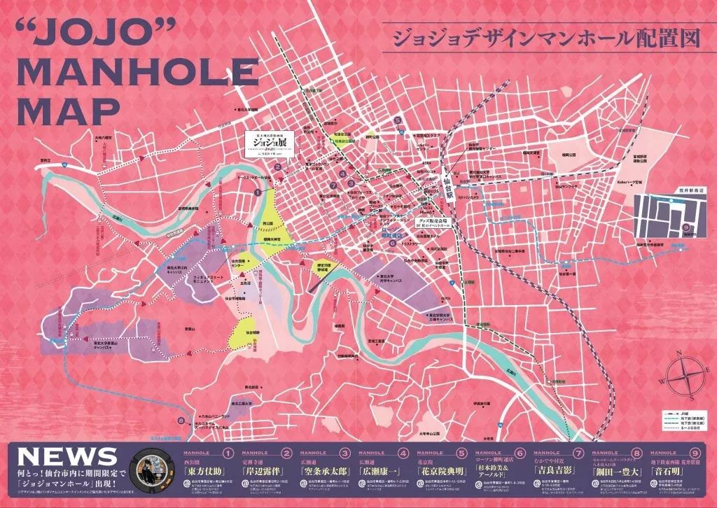 2017年的JoJo音乐节,jojo粉们捐助制造了9个jojo的井盖,还在地图上标注了每个井盖的位置。
