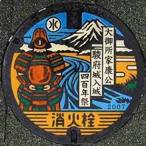 而同样是静冈,骏府城附近的井盖图案,就是为了纪念德川家康进入骏府城400年而专门设计的。