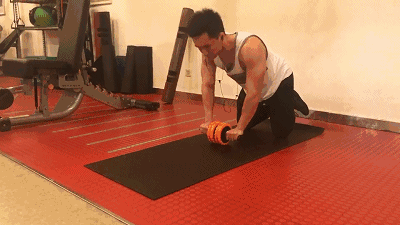 4. 健腹轮训练(拉长腹部两侧,四组,每组10个)