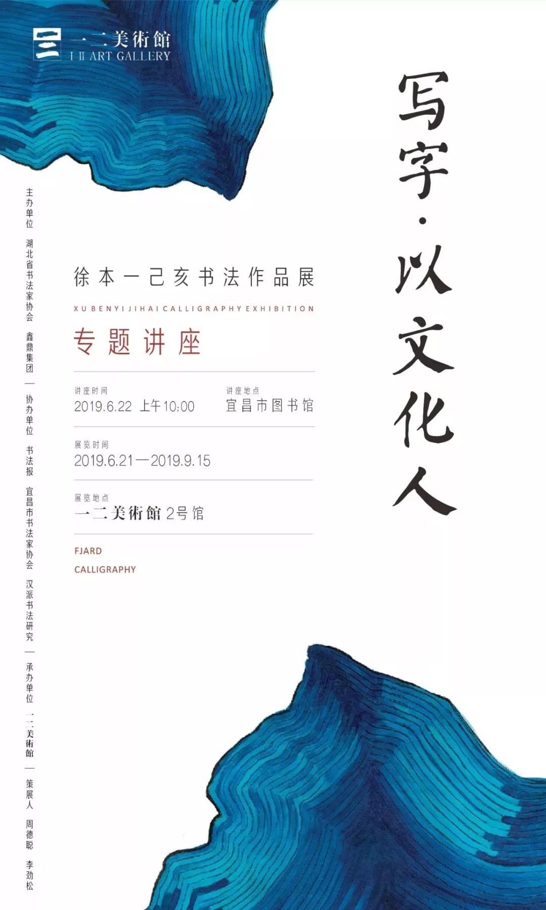 本次展览由湖北省书法家协会、鑫鼎集团主办,书法报、宜昌市书法家协会、汉派书法研究协办,一二美术馆承办,共展出湖北省书协主席、国家一级美术师徐本一先生书法作品30余件。