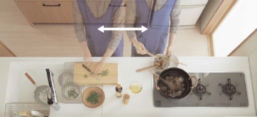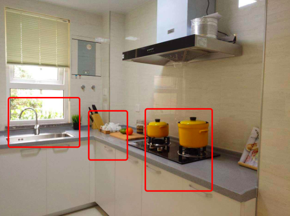 合理的厨房操作台设计,包含三个部分:水槽+灶台+操作台。这三个地方,不挑厨房布局,不管厨房是L型、一字型、岛型等,都适用。