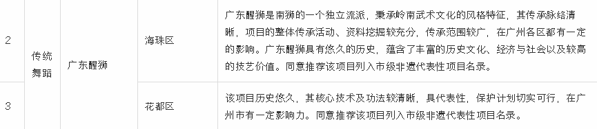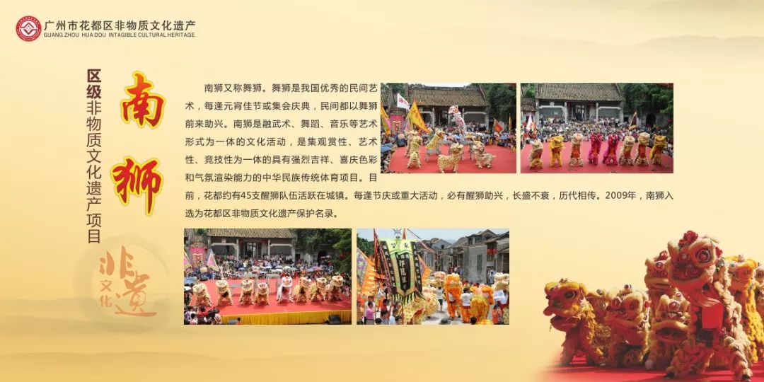 前段时间,在公示的广州市第七批非遗代表性项目推荐名单,花都区的广东醒狮入选扩展项目。在我区非遗日活动现场,也作为非遗节目亮相舞台,相信大家已经一睹他们的风采。