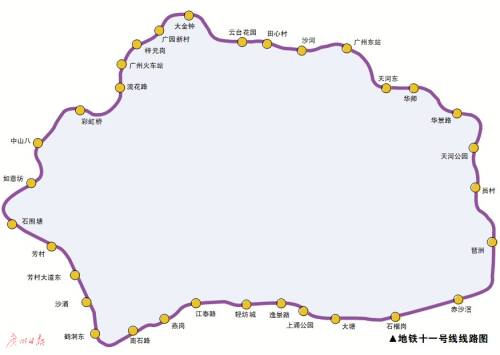 地铁十一号线是穿越广州市区的环线,线路途经天河区、白云区、越秀区、荔湾区和海珠区五个中心城区,联通广州火车站、广州东站等广州主要交通集散点,将有力改善中心城区市民出行条件。