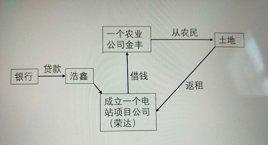 7、 所有的电站都是这样的结构和报建流程。这里的荣达电站和金丰农业作为例子,都是真实存在的公司,位于通辽市开鲁县辽河农场五分场。土地面积是2300亩,发电规模50MW/年。这个结构的妙处在于:金丰作为一个农业公司,本来是个壳,啥都没有。从荣达借来2500万块钱,从农民手上租来2300亩土地,为期26年。然后再平价租给电站荣达,它就平账了。但是,为了少交土地使用性质变更费,荣达只租光伏板支架那个桩桩的土地。于是光伏板之下、光伏板之间的土地(99%以上),还是在农业公司手上。它等于白得一块2300亩的土地。