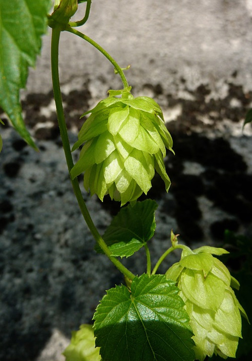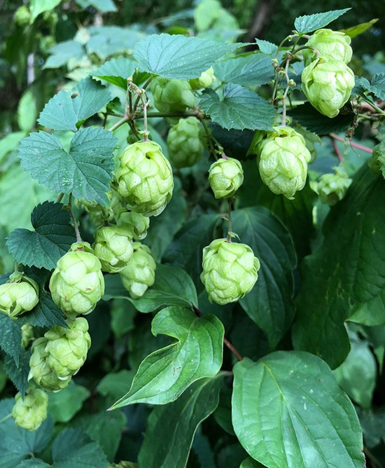其实啤酒花也是一种的攀援性草本植物。啤酒花植物叶片呈卵形,叶片边缘有锯齿形状,叶面上还生有小刺毛。