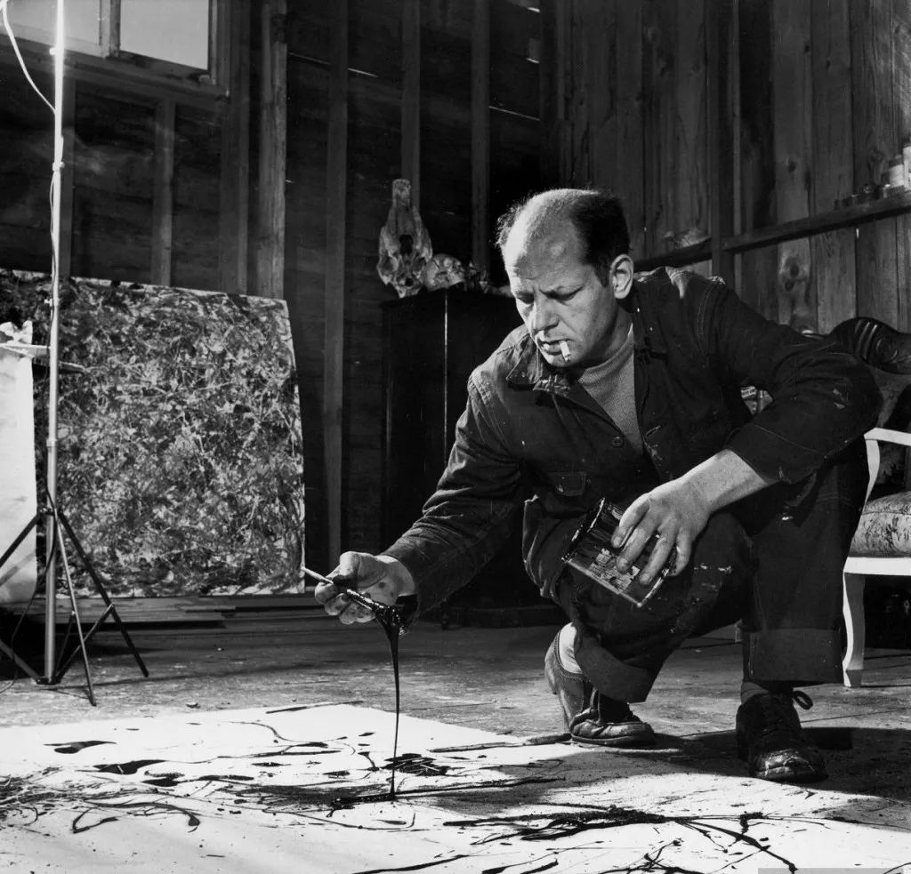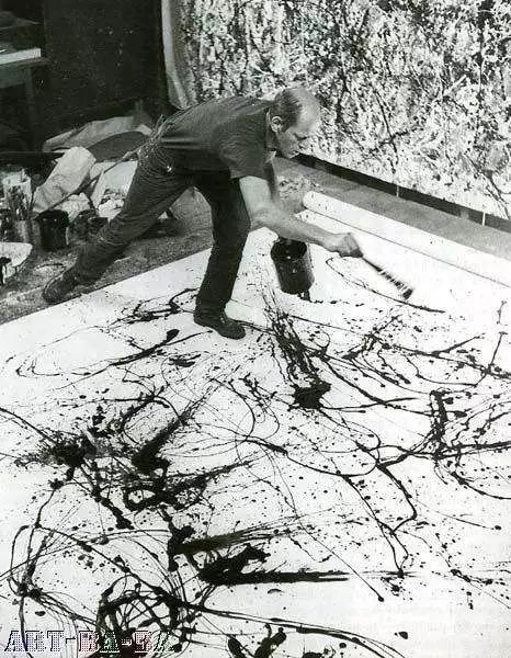 (汉斯·纳穆斯镜头下的杰克逊·波洛克所绘的作品)