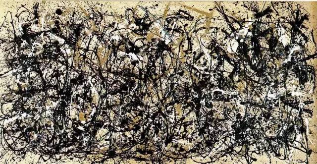 佩姬原本打算让波洛克直接在房子里的一面墙上作画,但杜尚说画在画布上更容易移动,佩姬听从了他的建议。欣然受命的波洛克对于要画什么完全没有头绪。他走进了艺术家的死胡同。几个月过去了,他盯着空空如也的 6 米长的画布,等待灵感来临。他等啊等。六个月来了又去,他光秃秃的画布上还是没有一丁点颜料的痕迹。佩姬的耐心也快要耗尽了——她告诉波洛克,要么现在就画,要么再也不用画了。波洛克选择了前者。然后,在一整晚疯狂的画画和激情中,他大干特干起来。第二天曙光将近的时候,他已完成了这次创作,而且在毫无知觉的情况下开启了一次将被称为“抽象表现主义”的新艺术运动。