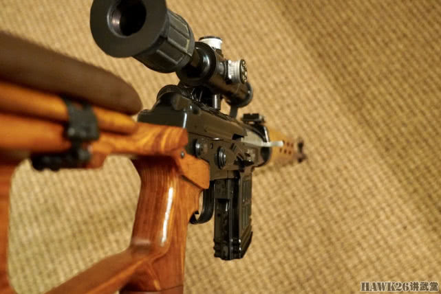 整体外观上与苏联德拉贡诺夫狙击步枪(SVD)相同,没有什么差别。这支步枪几乎是全新的,KUN只用它打了二十多发弹药。