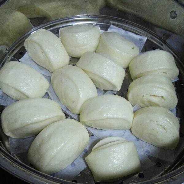 5、蒸锅内加水烧至40-50度时关火,把馒头放在蒸锅内,二次醒发20分钟后开火,上汽后蒸15-20分钟。馒头蒸好后关火,再焖3-5分钟再出锅,这样可以防止热馒头突然遇冷而出现回缩变硬。