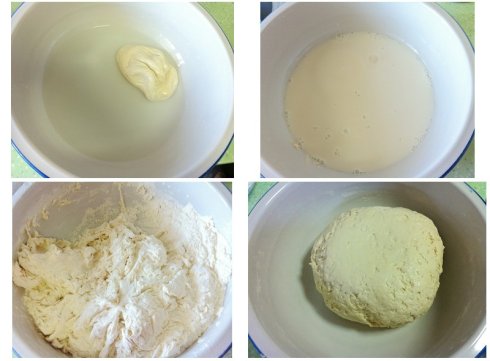 方法3:准备500g面粉,250g温水和100g白酒(或啤酒),将食材充分混合均匀,静置,利用白酒或啤酒的发酵作用进行发酵,待面团呈均匀而美丽的蜂窝状组织时即成。
