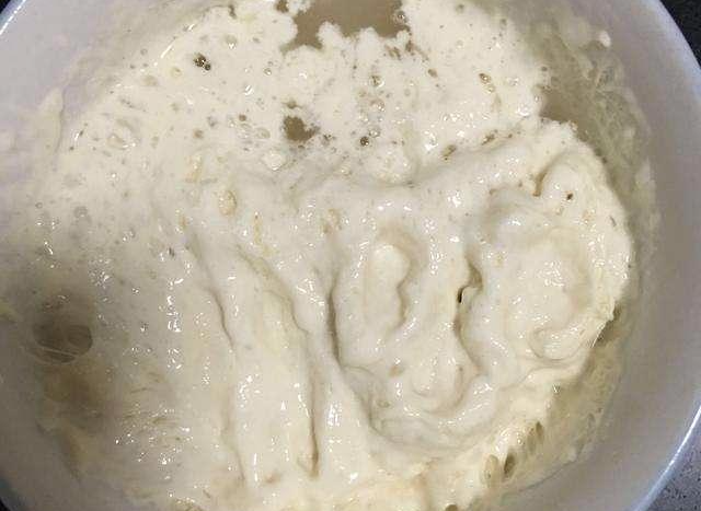 方法2:准备稀饭150g,放在通风的地方2-3天(30度左右温度最佳),看到其发酵冒泡时,加入50g面粉搅拌均匀(如稀饭出现霉点,用筷子剥去霉点),静置4-5小时后再加50g面粉搅拌均匀,10小时以上就可发酵成功。
