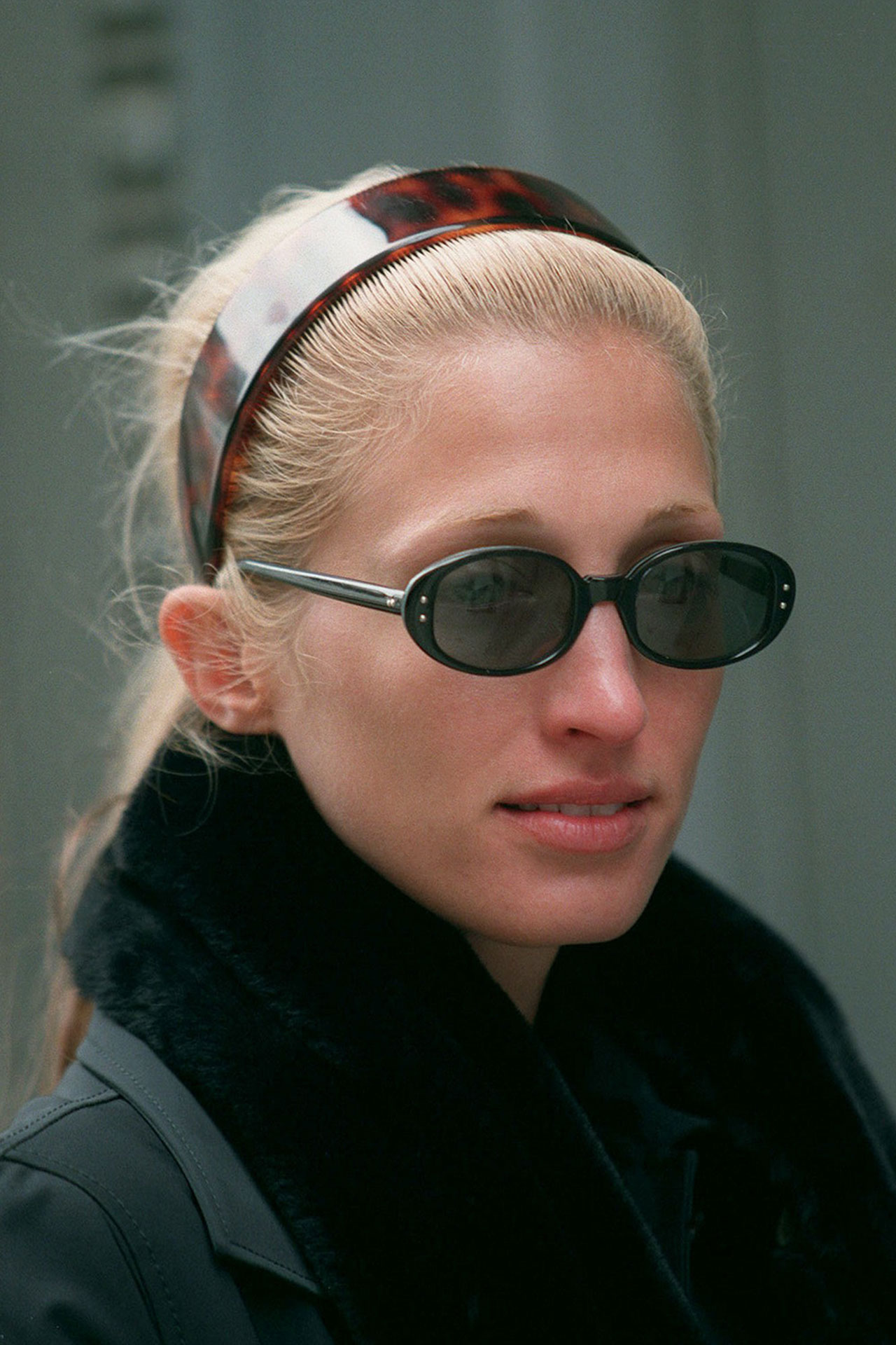 缎面头饰或许是从 Prada 大秀开始回归,但 Bessette-Kennedy 可算是早期拥护者,经常以宽版龟壳型艾丽斯发箍搭配椭圆形墨镜和白 T 现身。类似的造型在 Simone Rocha、Alexandre de Paris 和 Lele Sadoughi 秀场上比比皆是,证明经典的童年装饰物确实能融入日常生活,纽约街头以及各种正式场合等等。