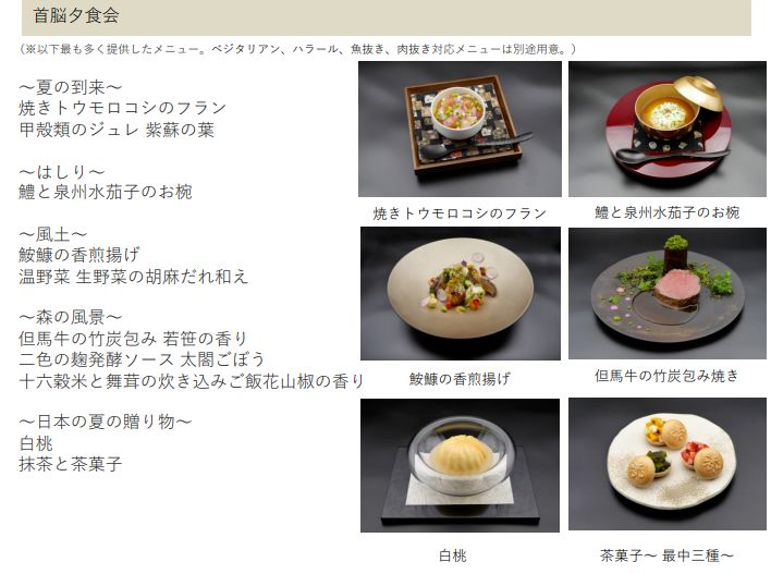 晚餐会的菜单由日本外务省发表,料理的主题是“里山”。