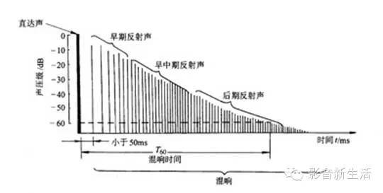 听者接收到的直接来自声源的声音叫直达声,经过顶棚、墙面等的反射后接收到的称为反射声。其中经过一次反射就被接收的称为一次反射声,经过多次反射后被接收的叫多次反射声。最先到达听者的是直达声,以后是各次反射声。由于各个反射声走过的路程长度各不相同,到达时间也就各不相同(迟于直达声到达的时间叫做“延时”),它们在时间轴上形成--个序列。