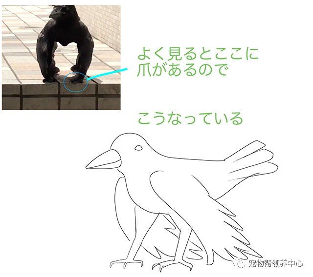 可这是乌鸦却是用双臂支撑着身体,大老远看上去就跟一个“微型金刚”一样。