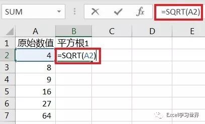 如果 number 为负数, 则 SQRT 返回 #NUM! 错误值