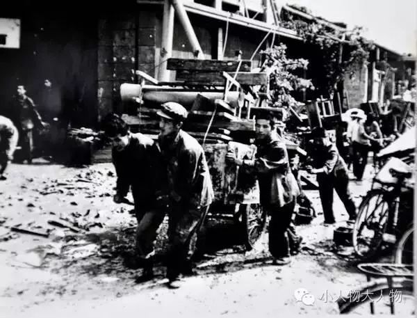 解放军战士在清理废墟