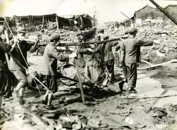 解放军指战员在安康东关重灾区抬尸体