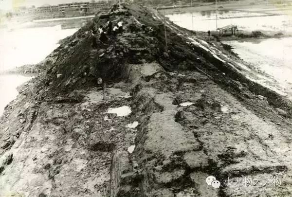 被洪水毁坏的安康北堤纱帽石段。吴定国的家原来就在堤内,门前那棵小树已经被水冲成一根细杆(图中挂着衣服的就是树杆)