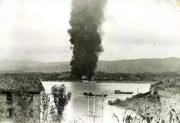 1983年8月1日中午。安康县交通局机动船驶进县政府机关前院接部分脱险群众干部转移情景