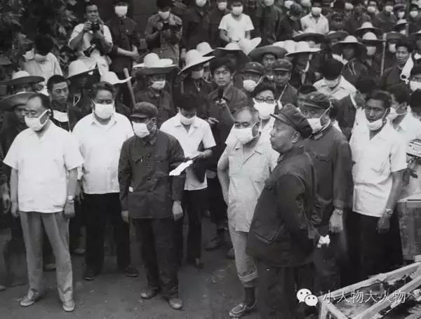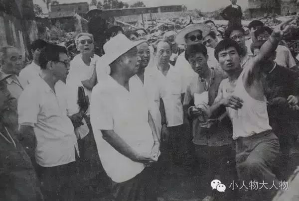 时任中央政治局委员、书记处书记、国务院副总理万里(左二),中共中央委员、国务院副总理李鹏(左一)在安康东关重灾区视察