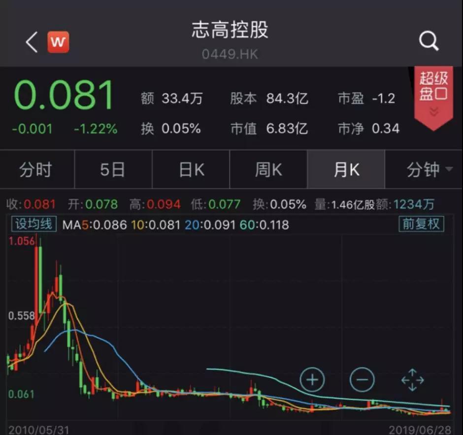 而今年以来,志高控股更是通过两次变卖资产来补充公司的运营资金,最近一次就是在5月底卖地。每经小编(微信号:nbdnews)注意到,截至6月28日,志高空调股价报0.081港元,总市值仅6.83亿港元,较其2010年巅峰时候的市值,已经跌去超90%,蒸发超82亿港元。