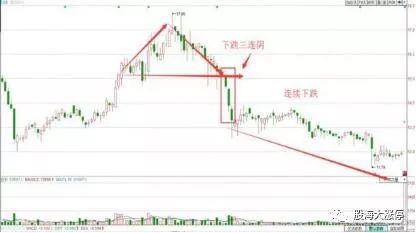 在下跌初期出现下跌三颗星,表明市场仍处于弱势,股价仍有下跌的空间,投资者应离场为安,如果在下跌中期出现下跌三颗星,表明市场买卖意愿不强,市场将以盘跌为主。